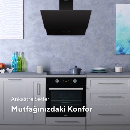 KUMTEL Dizayn Antrasit (Gri) Cam Ankastre SetB66-S2 (MT) (3 PRO 3 DÜĞ) ANTRASİT (GRİ) CAM FIRINA+ en..